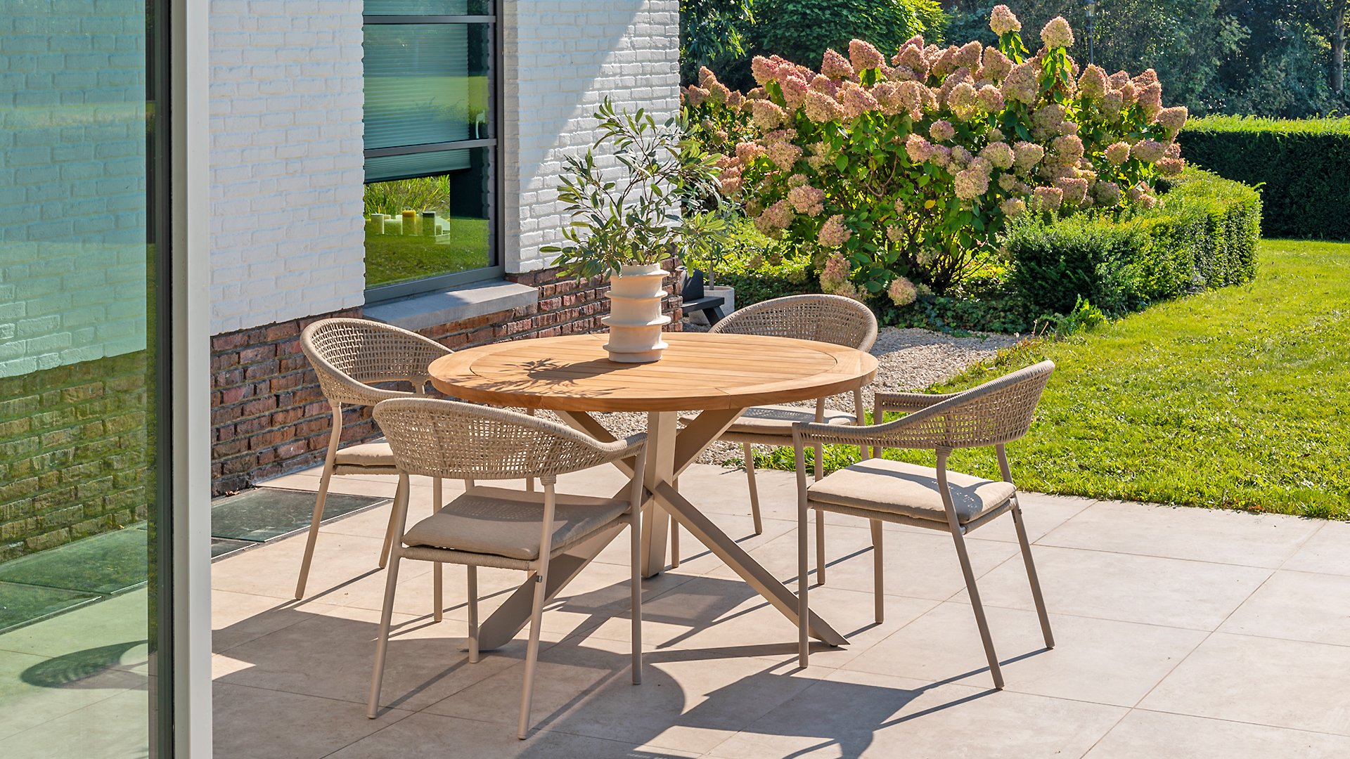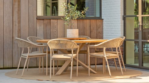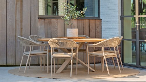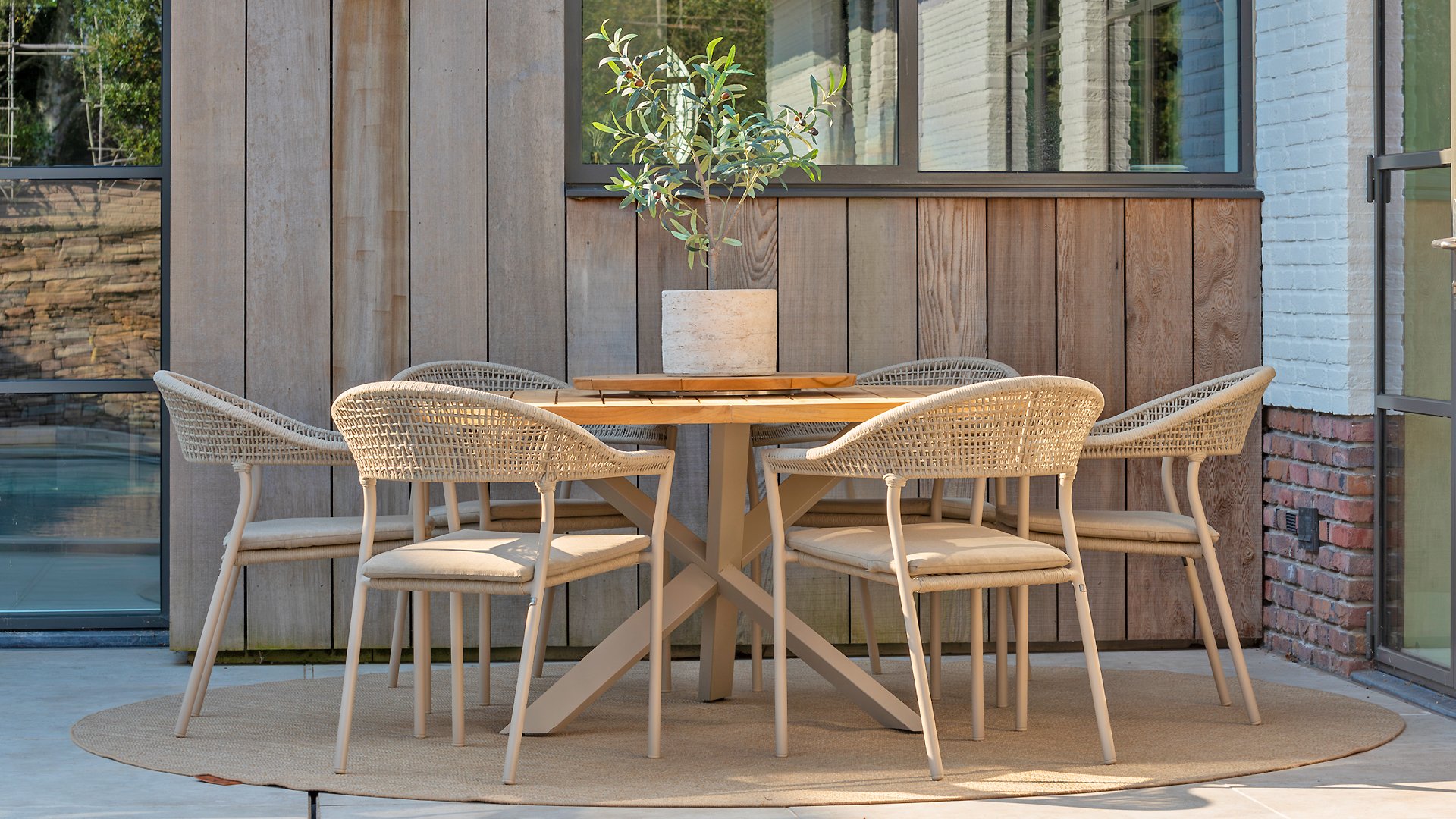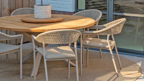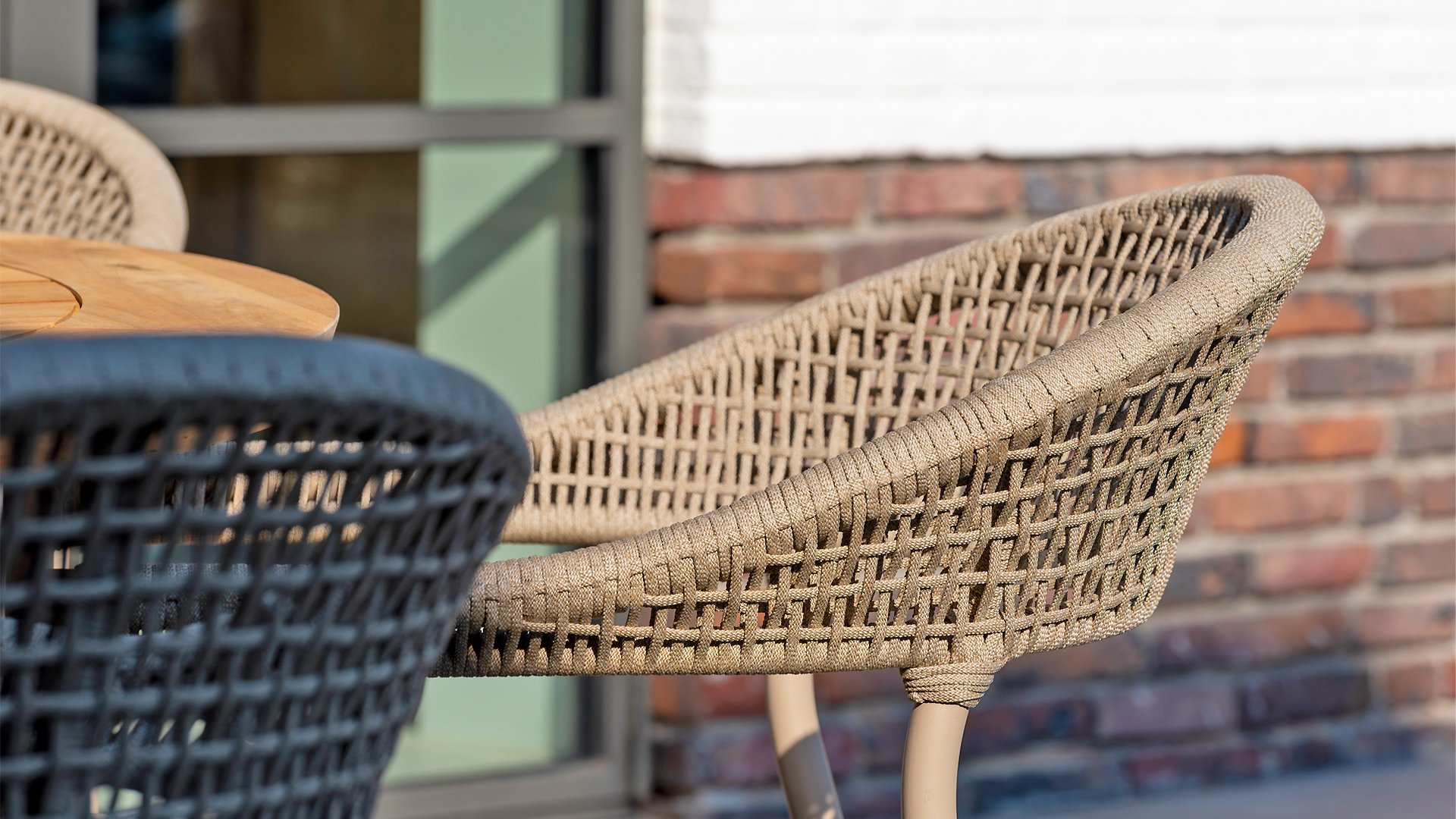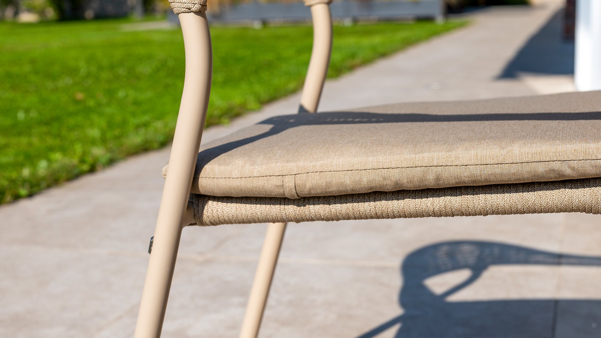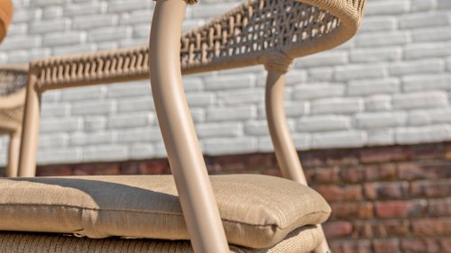 Die Terrassenmöbelserie Taste Sienna besticht durch ihren einzigartigen Stil, der durch moderne Seilelemente noch unterstrichen wird! Die Schönheit liegt im Detail. Die Rückenlehne der Sienna-Essgruppe von Taste by 4Seasons ist aus Seil geflochten und bietet so eine stabile und zugleich bequeme Sitzfläche. Das Gestell erzeugt ein verspieltes und minimalistisches Zusammenspiel fließender Linien und bildet eine solide Basis. Ein wahrer Augenschmaus! Die Sienna ist in den Farben Latte, Terre und Anthrazit erhältlich.