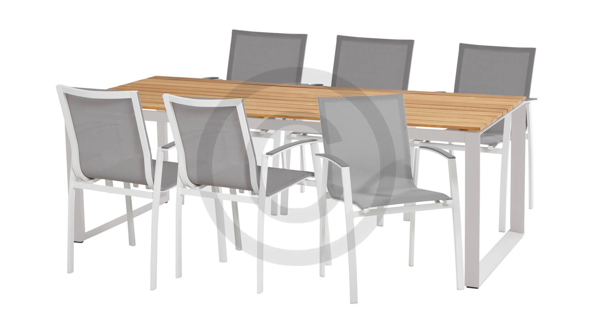 Der Taste by 4 Seasons Outdoor Heritage Table 220cm White Teak ist ein hochwertiger Tisch. Das Industriedesign mit elegantem Sleepfoot lässt sich gut mit der gesamten 4 Seasons Dining-Kollektion kombinieren. Der Aluminiumrahmen ist pulverbeschichtet und rostet nicht. Das Teakholz muss nicht behandelt werden. Wer dem natürlichen Ergrauen entgegenwirken möchte, kann auf den Protector von 4Seasons zurückgreifen.