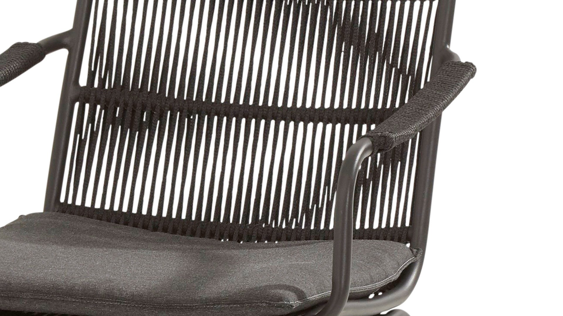 De Taste by 4Seasons Wave dining heeft een kuip met uniek geknoopt Rope. De luchtige looks zijn in de kuip en ook in het onderstel terug te vinden, het minimalistische onderstel is gemaakt van subtiele RVS buizen in een antraciet kleurige coating. Bovendien zijn de kussens van een Olefin kussen hoes voorzien voor het beste comfort en hoge weerbestendige eigenschappen.