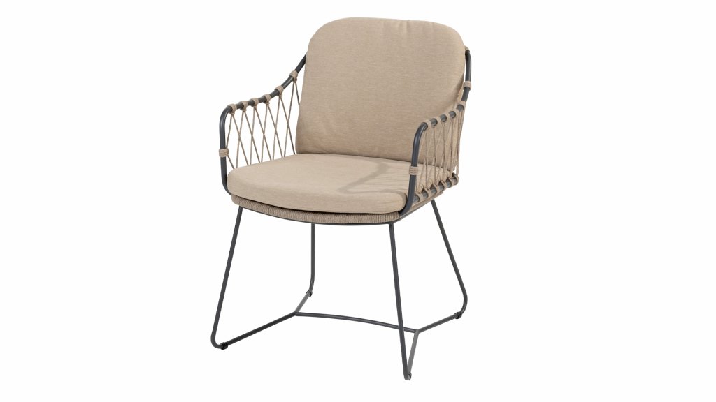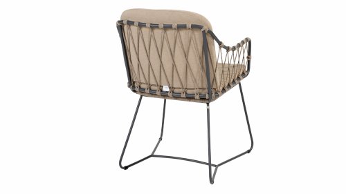 Der Prego Dining Chair ist aus hochwertigem Taupe Rope gefertigt und verfügt über ein stabiles Rahmen aus anthrazitfarbenem Edelstahl und Aluminium, wodurch er den wechselnden Witterungsbedingungen standhält. Die mitgelieferten Kissen sorgen für zusätzlichen Komfort bei langen, entspannten Abendessen oder geselligen Treffen im Freien.