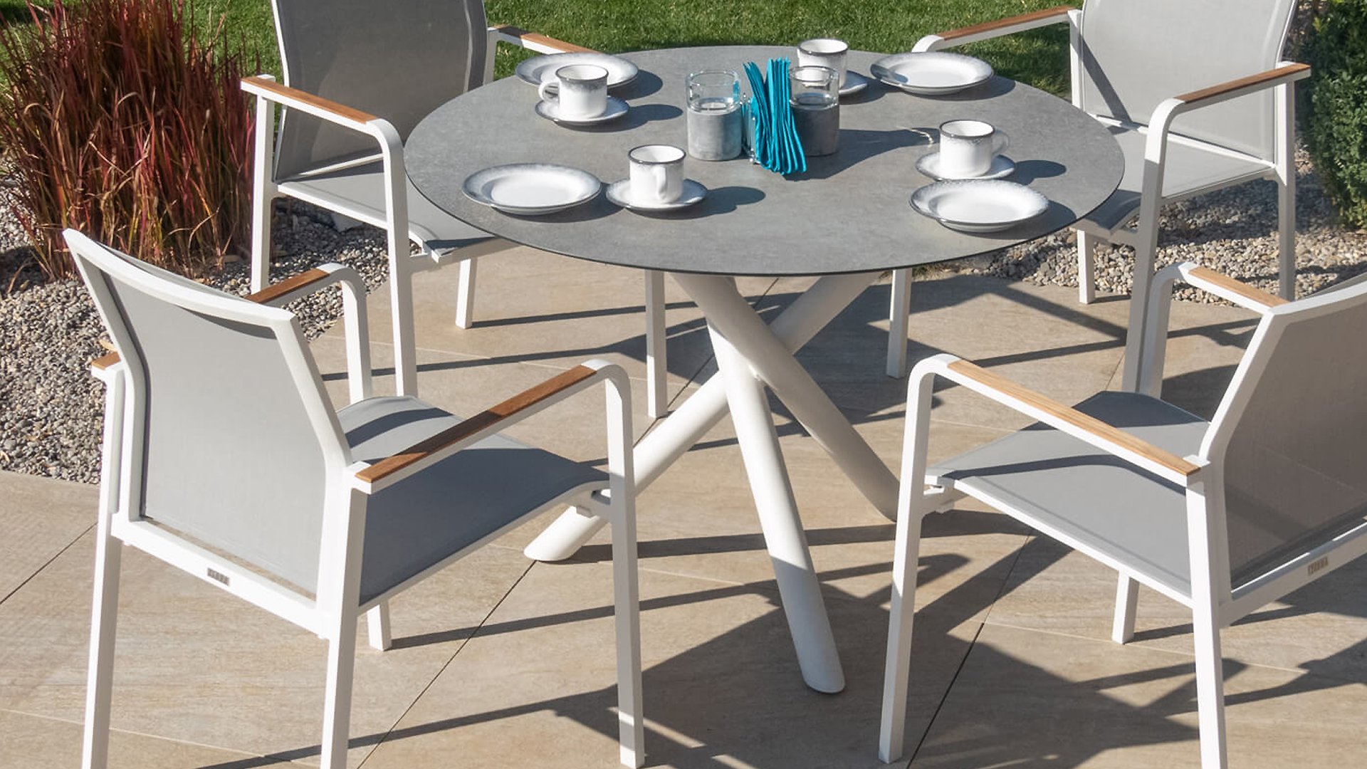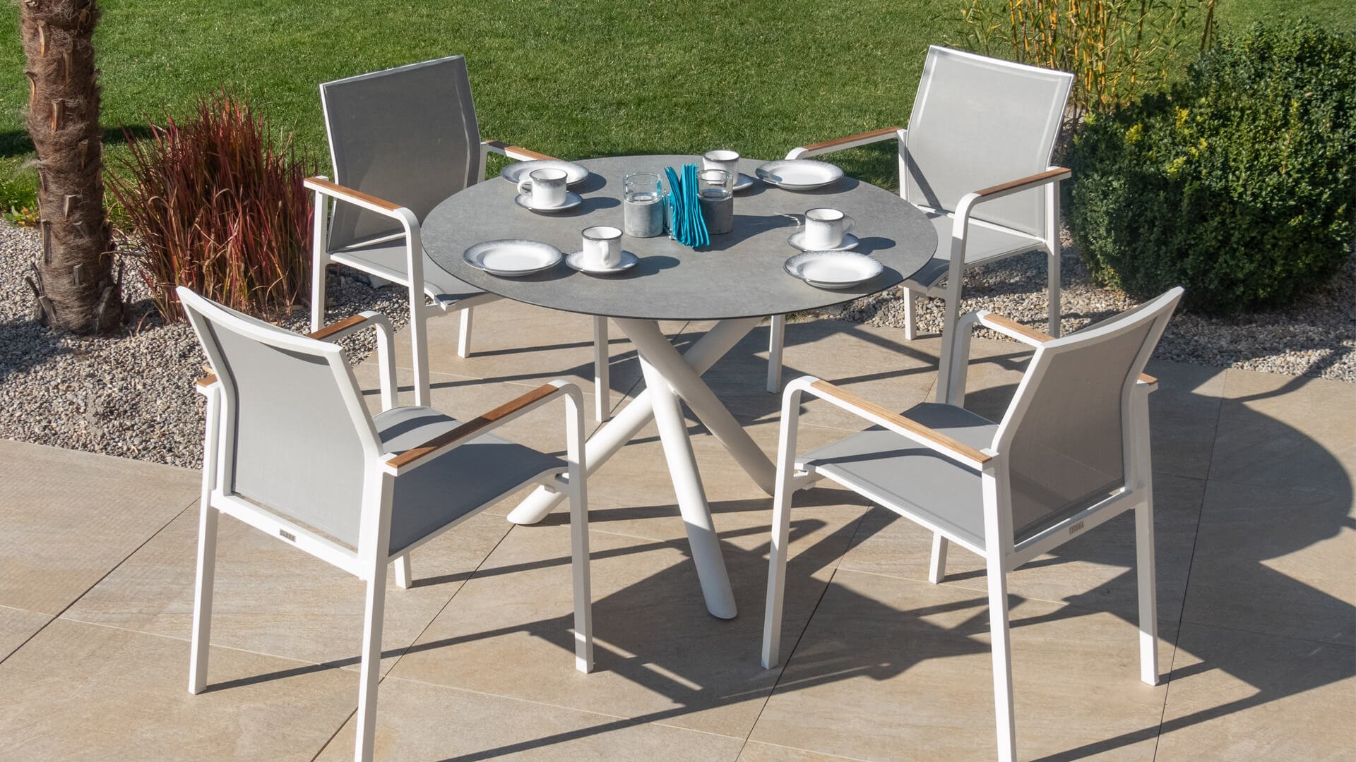 Aluminium ist sehr wartungsfreundlich und leicht. Diese praktischen Möbel sind leicht zu reinigen. Unser Aluminium mit einer festen Pulverbeschichtung ist witterungsbeständig und UV-beständig. Aluminium ist nicht rostanfällig, zeitlos und stilvoll.