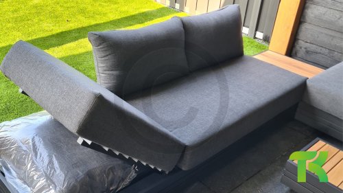 Die Rückenkissen werden auf die Lehnen aufgesteckt. Die Polsterstoffe aus Olefin-Gewebe haben eine Anti-Flecken Ausrüstung, die die Reaktion auf bestimmte Produkte verhindert. Ebenso besitzen die Stoffe eine niedrige Verschleißbarkeit, optimale Stabilität, hervorragende Farbechtheit und ein sehr gutes Verhalten gegenüber Mikroorganismen.