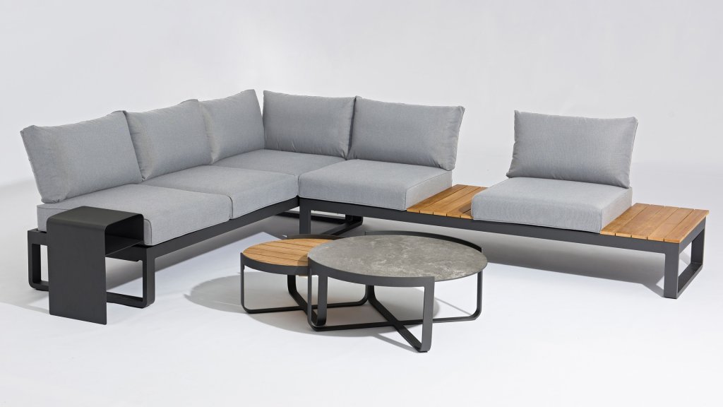 Das Lounge-Set Fly Lounge der Marke Zebra besteht aus einem 3- und einem 2-Sitzer mit Teak-Ablagen, die mit dem zusätzlichen Rückenkissen-Set lückenlos über Eck kombiniert werden können und so eine gemütliche Sofalandschaft bilden. Als Ablagefläche ist das hochwertige 2er-Tischset und ein zusätzlicher Beistelltisch aus Aluminium im Lieferumfang enthalten. Die gelungene Materialkombination aus Aluminium, Teakholz und Glas-Keramik zusammen mit den komfortablen Polstern verleihen Ihrem Außenbereich ein modernes und wohliges Ambiente. Die Möbel überzeugen durch eine hochwertige Verarbeitung, hohen Komfort und Design. Alles passt perfekt zusammen und bildet eine geschmackvolle Einheit, die zum Wohlfühlen einlädt. Sie können dieses Zebra Fly 3-Sitzer-Sofa auch als separate Liege oder als wunderbaren Liegeplatz in Ihrem Lounge-Set verwenden, da Sie den linken oder rechten Sitz als verstellbare Rückenlehne verwenden können.