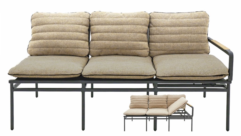Die Max Lounge von Greenline by Zebra hat ein unverkennbares Design im hellen Loftstil und eine besondere Materialmischung mit einer warmen Ausstrahlung, die sich ideal als Lounge und als Dining eignet! Sie passt sich flexibel Ihren Wünschen an und sieht nicht nur auf der Terrasse gut aus, sondern macht sich auch gut im Wintergarten, Wohnzimmer oder überall dort, wo Sie eine stilvolle, komfortable Sitzgelegenheit benötigen. Das Sitzteil an der Armseite der Max Lounge 3-Sitzer-Sofas ist verstellbar, sodass Sie bequem mit aufrechtem Kopf liegen können und somit ein herrliches "Liegebett" haben.