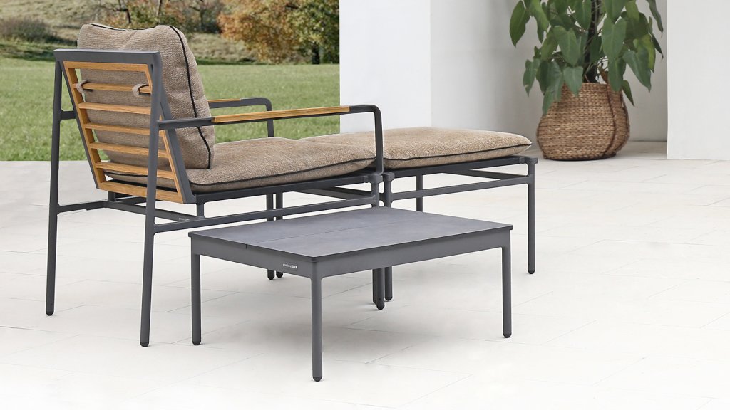 | Materialien Loungegruppe | Teak, Pulverbeschichtet Aluminium/Stahl |