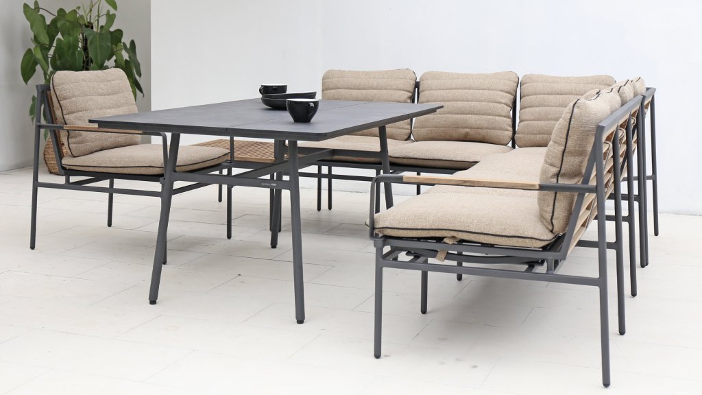 | Materialien Loungegruppe | Teak, Pulverbeschichtet Aluminium/Stahl |