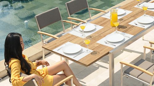 1 x Zebra Kubex Tisch ausziehbar 170-280cm Edelstahl Teak
